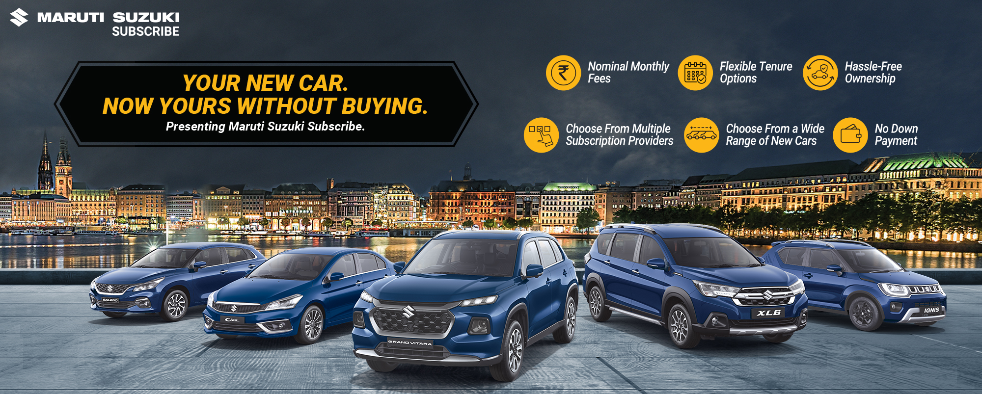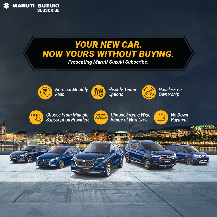 Maruti Suzuki Subscribe enables all customers to enjoy driving their preferred Maruti Suzuki cars without having to deal with all the financial responsibilities that come with owning a car.All you need to do is opt for a monthly subscription plan at a fixed monthly fee, which includes the routine maintenance and insurance costs, and choose a flexible tenure. At Kuldeep Motors in, Saket Nagar, Kanpur, all Hatchback, Sedan, SUV, the MUV models line-up includes Baleno, Invicto, EVitara, Jimny, Ciaz, Ignis, Fronx, Grand Vitara, XL6. Here, you will enjoy Maruti Suzuki Subscribe benefits such as: